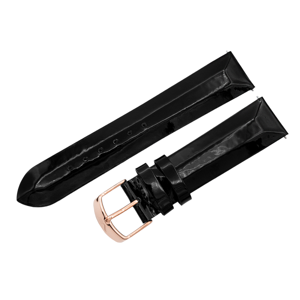- kožený řemínek černý lesklý na dámské hodinky UNDINE s pozlacenou přezkou