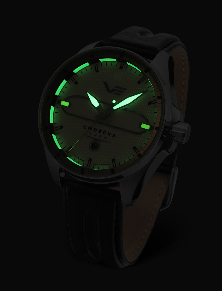 vrstvou Superluminova je pokrytá vnitřní luneta ciferníku, indexy na pozicích 3 a 9 hodin a ručičky