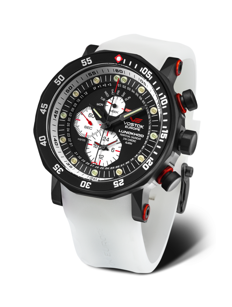 Luminiscenční silikonový řemínek pro model LUNOCHOD s černou matnou přezkou pro pánské hodinky VOSTOK EUROPE model LUNOCHOD 6S21-620A630, NH35-620A634, YM86-620C635 a YM86-620A636
