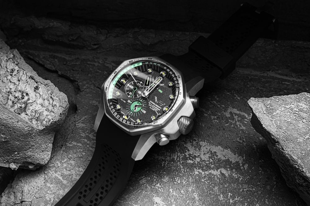 - funkce: hodiny, minuty, sekundy, 24-hodinový chronograf a budík, věčný kalendář, šroubovací korunka a automatický heliový ventil