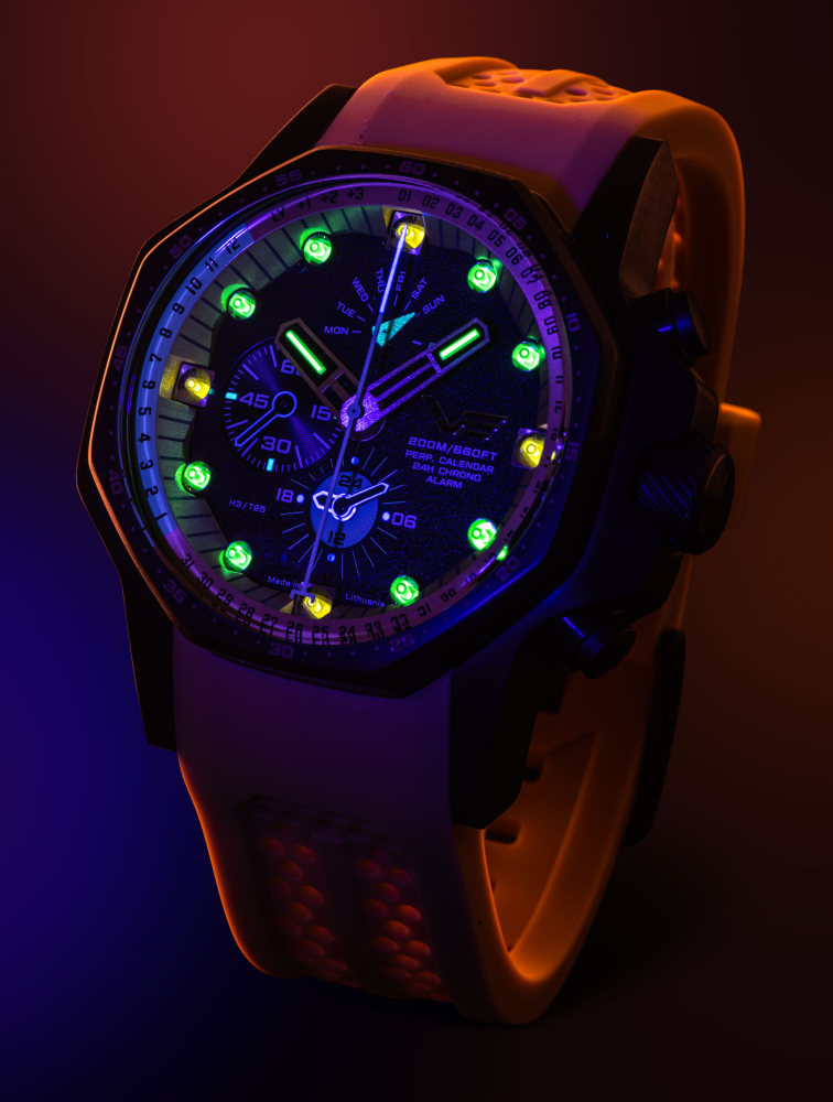 - osvětlení ciferníku: trícium (14 tríciových kapslí: 12 ks na indexech, 1 ks na hodinové a 1 ks na minutové ručičce)