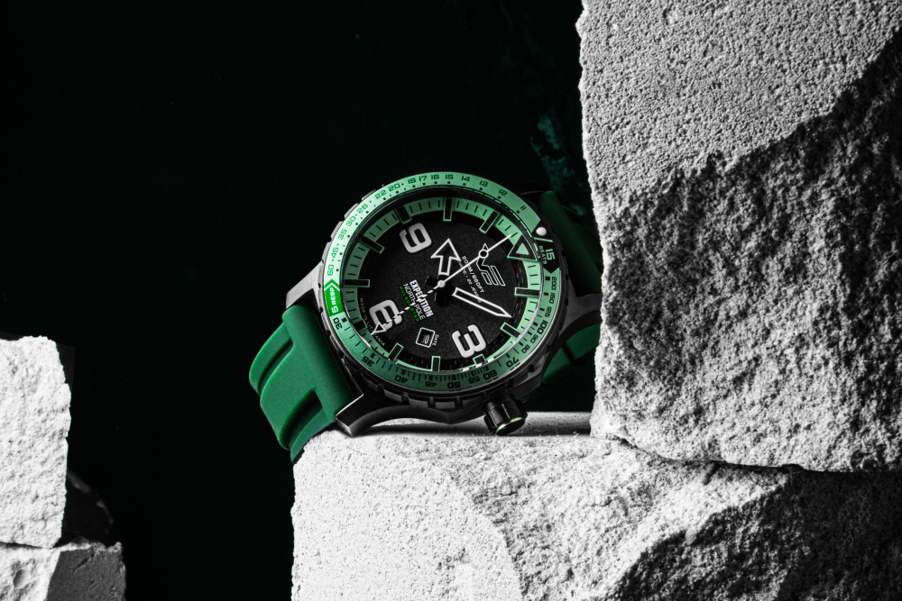 vnitřní zelená luneta na ciferníku je pokryta vrstvou SuperLuminova