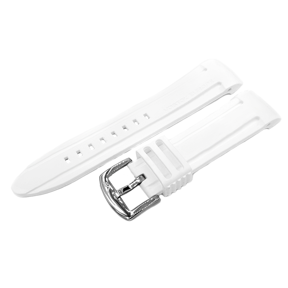 bílý silikonový řemínek se stříbrnou přezkou pro pánské hodinky VOSTOK EUROPE model BATISCAFOS PX84-511E769 a NH35-511A768