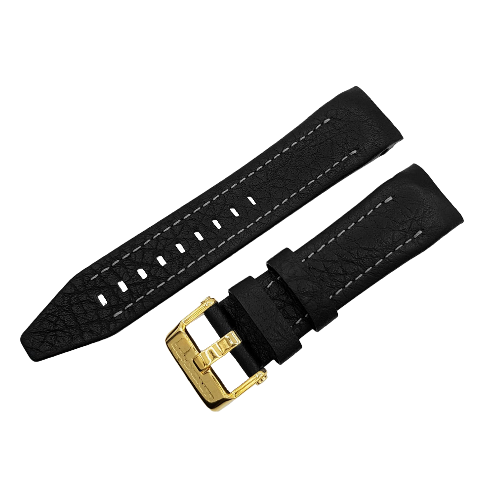 - Černý kožený řemínek pro LUNOCHOD 6S21-620E529 s pozlacenou přezkou