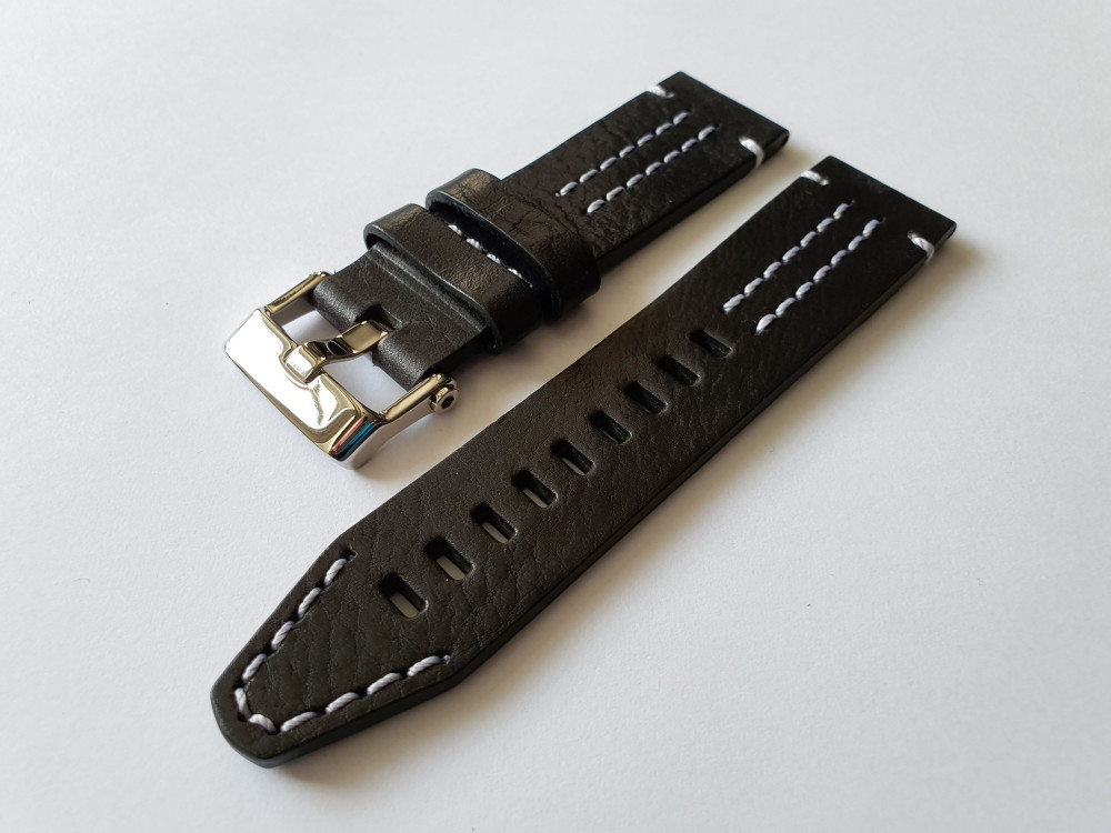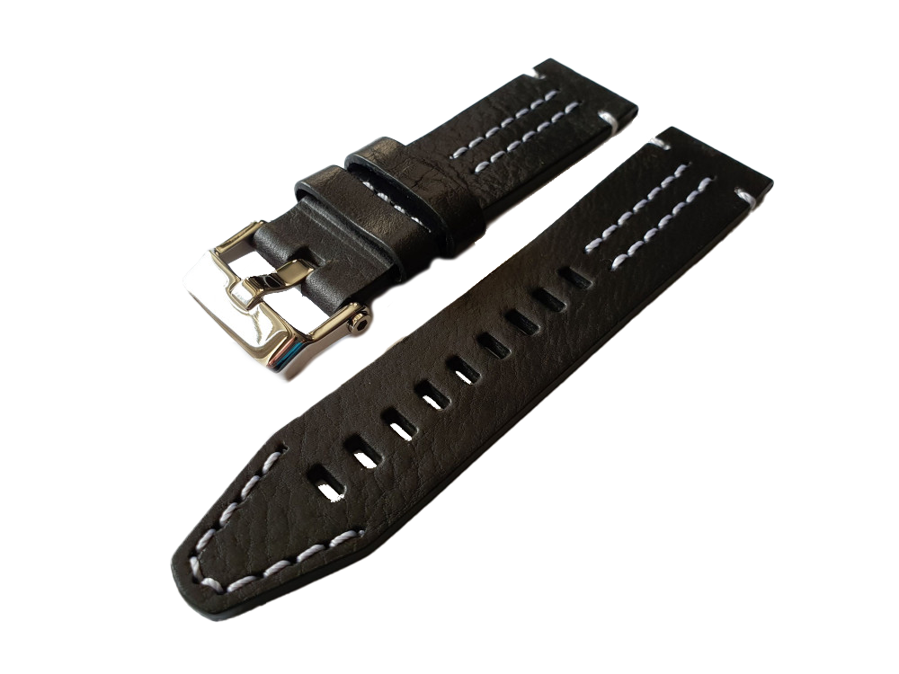 - Černý kožený řemínek pro model EKRANOPLAN 6S21-546A508 s ocelovou lesklou přezkou