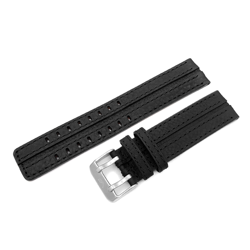 - černý kožený řemínek s matnou ocelovou přezkou pro EXPEDITION Compact