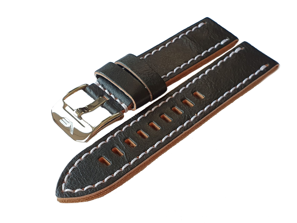 - černý kožený řemínek s ocelovou lesklou přezkou pro model ALMAZ NH35A-320A258