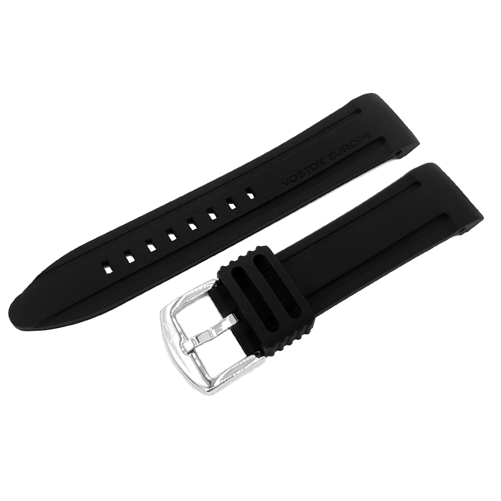 Černý silikonový řemínek se stříbrnou přezkou pro pánské hodinky VOSTOK EUROPE model BATISCAFOS