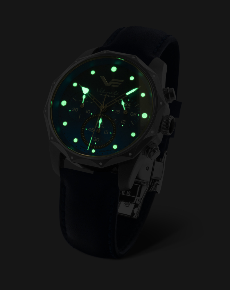 Tyto dámské chronografy, inspirované řekou Vilnele, kombinují přirozenou eleganci s moderní všestranností. Pouzdro z chirurgické oceli má vlnitou lunetu, která imituje vlnivý pohyb vody a výborně se hodí buď k integrovanému kovovému náramku, nebo kůže či silikonový řemínek. Hodinky jsou poháněny přesným quartzovým strojkem s funkcí chronografu a mají třpytivý ciferník, který mění tón jako světlo na hladině tekoucí vody. Díky safírovému sklíčku a vodotěsnosti 100 metrů jsou hodinky dokonale vhodné pro každodenní život a outdoorové aktivity.