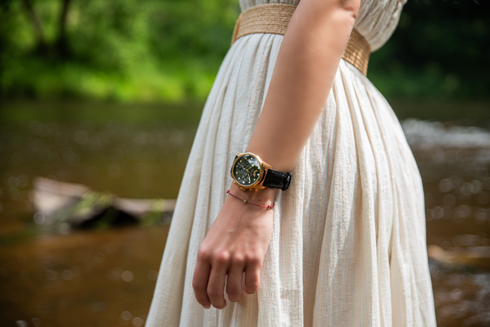 Odvážné modely s chronografem díky hlubokým třpytivým barvám ciferníků odrážejí pohyb vody, zatímco decentní modely se solárním strojkem evokují jemnější tóny přírody díky perleťovým ciferníkům a třpytivým diamantům. Ať už odvážné nebo decentní, všechny modely nabízejí všestrannost i sílu, stejně jako řeka, která je inspirovala.