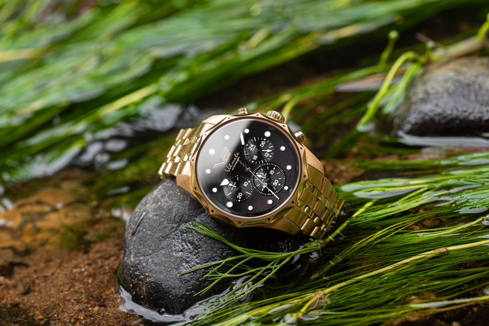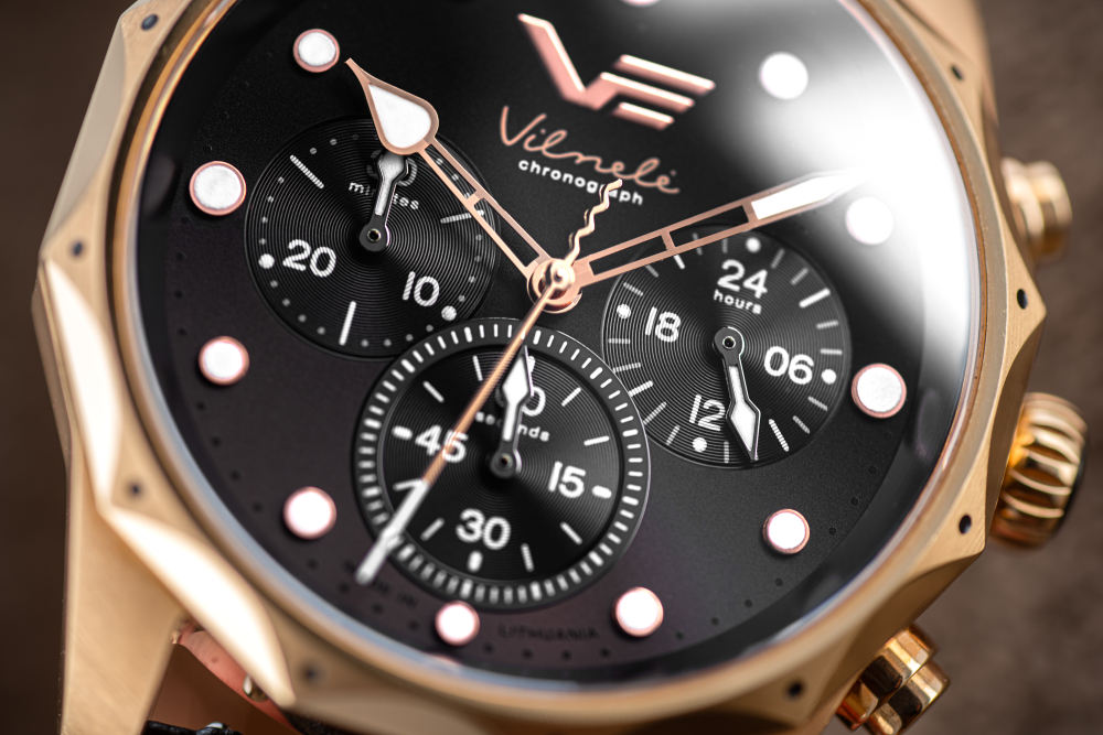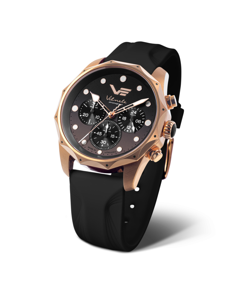 Tyto dámské chronografy, inspirované řekou Vilnele, kombinují přirozenou eleganci s moderní všestranností. Pouzdro z chirurgické oceli má vlnitou lunetu, která imituje vlnivý pohyb vody a výborně se hodí buď k integrovanému kovovému náramku, nebo kůže či silikonový řemínek. Hodinky jsou poháněny přesným quartzovým strojkem s funkcí chronografu a mají třpytivý ciferník, který mění tón jako světlo na hladině tekoucí vody. Díky safírovému sklíčku a vodotěsnosti 100 metrů jsou hodinky dokonale vhodné pro každodenní život a outdoorové aktivity.