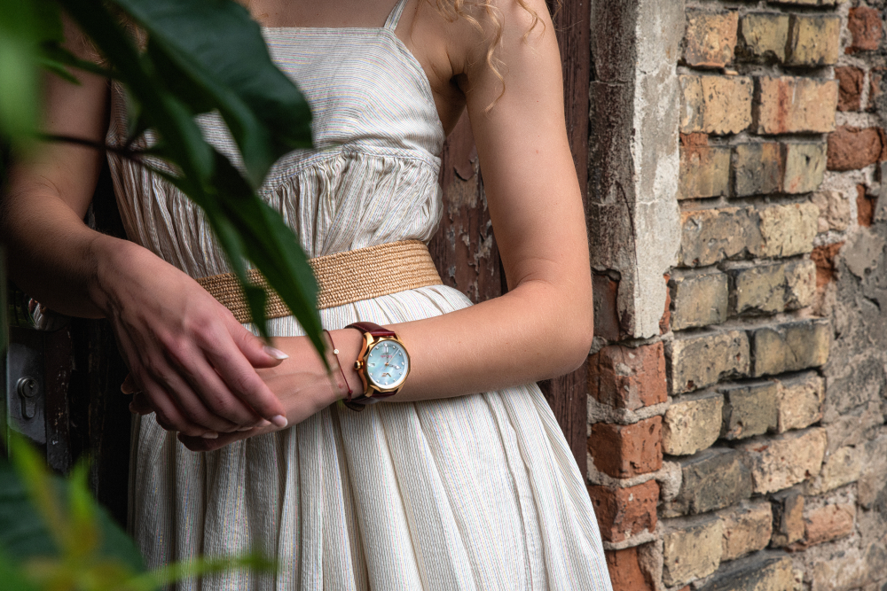 Tyto dámské hodinky jsou inspirovány řekou Vilnele. Díky svému rafinovanému designu a elegantním detailům jsou tyto hodinky ideální pro každodenní nošení. Vyvažují ležérní styl s přirozenou elegancí.