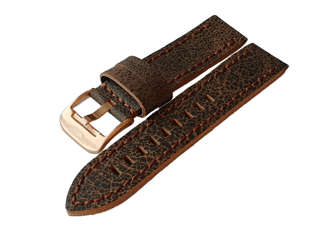 - hnědý kožený řemínek s měděnou přezkou pro ALMAZ model NH35A-320O265