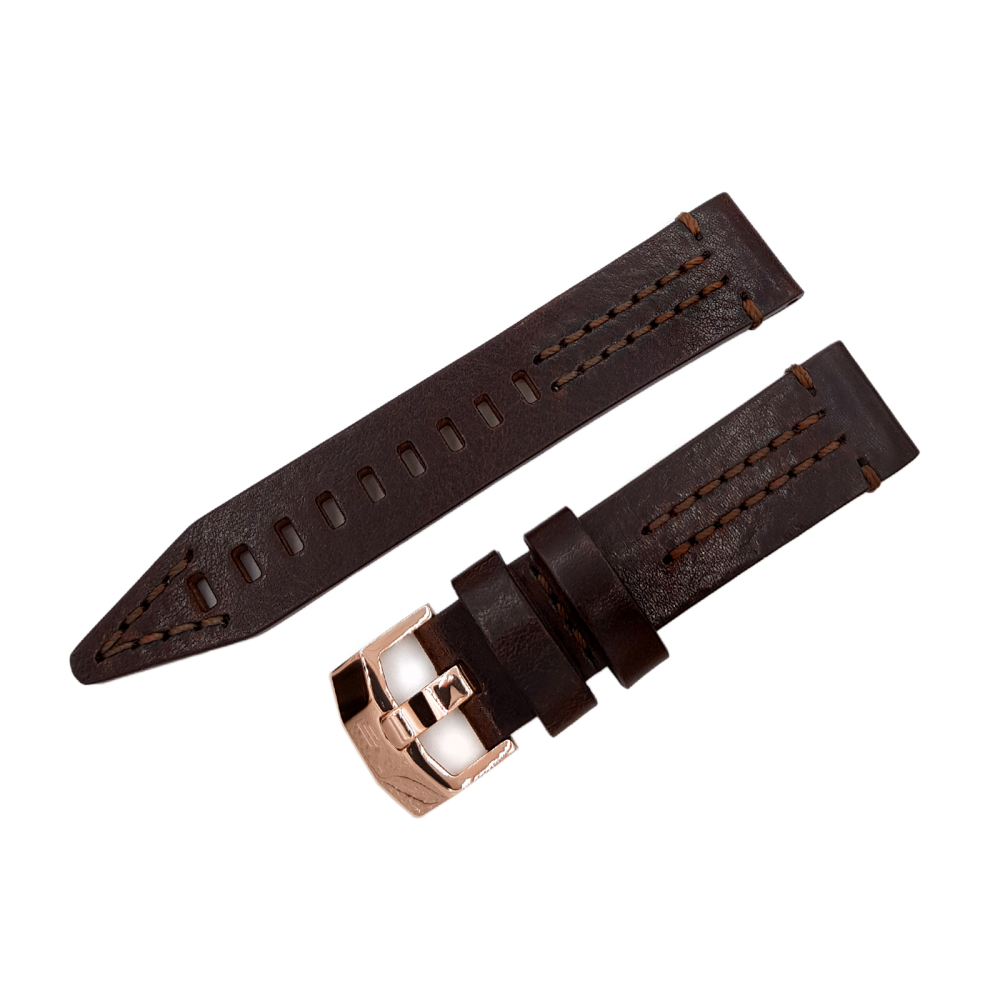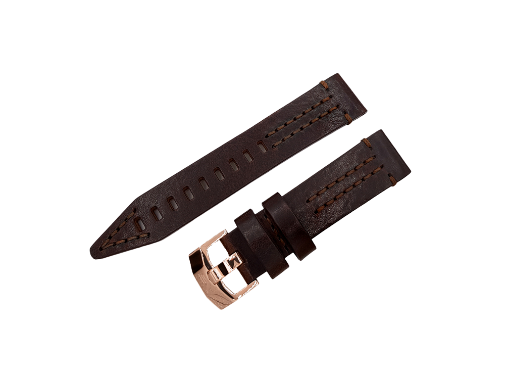 - Hnědý kožený řemínek s pozlacenou přezkou pro Rocket N-1