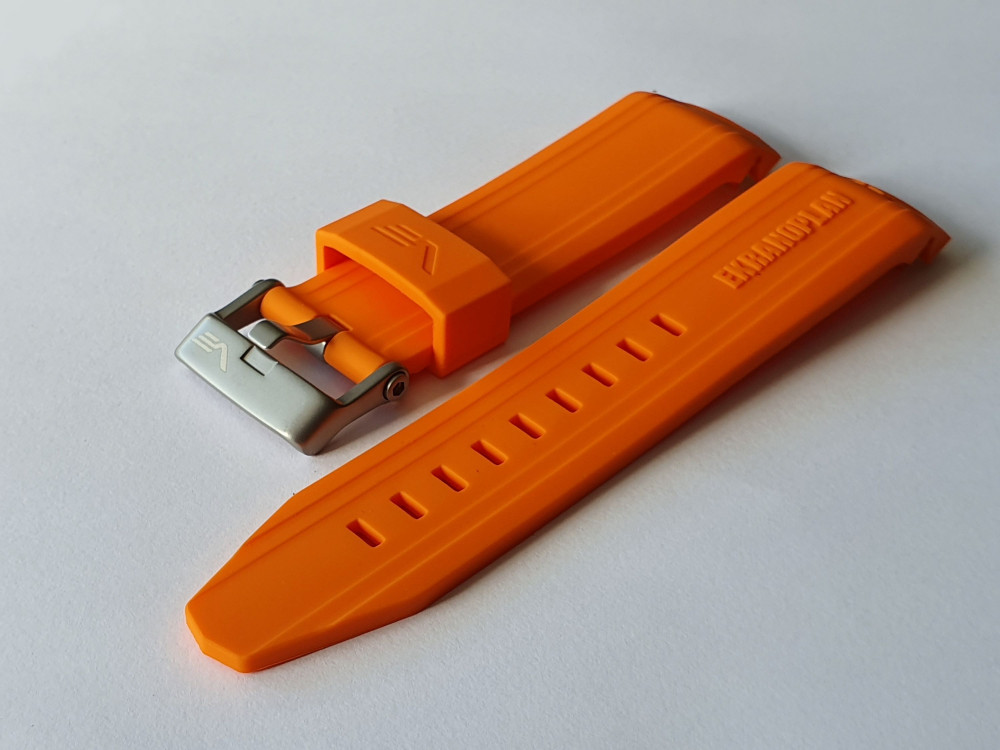 - Oranžový silikonový řemínek pro EKRANOPLAN NH35/546A509 s matnou ocelovou přezkou