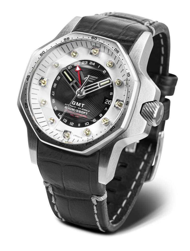 - funkce: hodiny, minuty, sekundy, indikátor 24hodinového času, šroubovací korunka a automatický heliový ventil