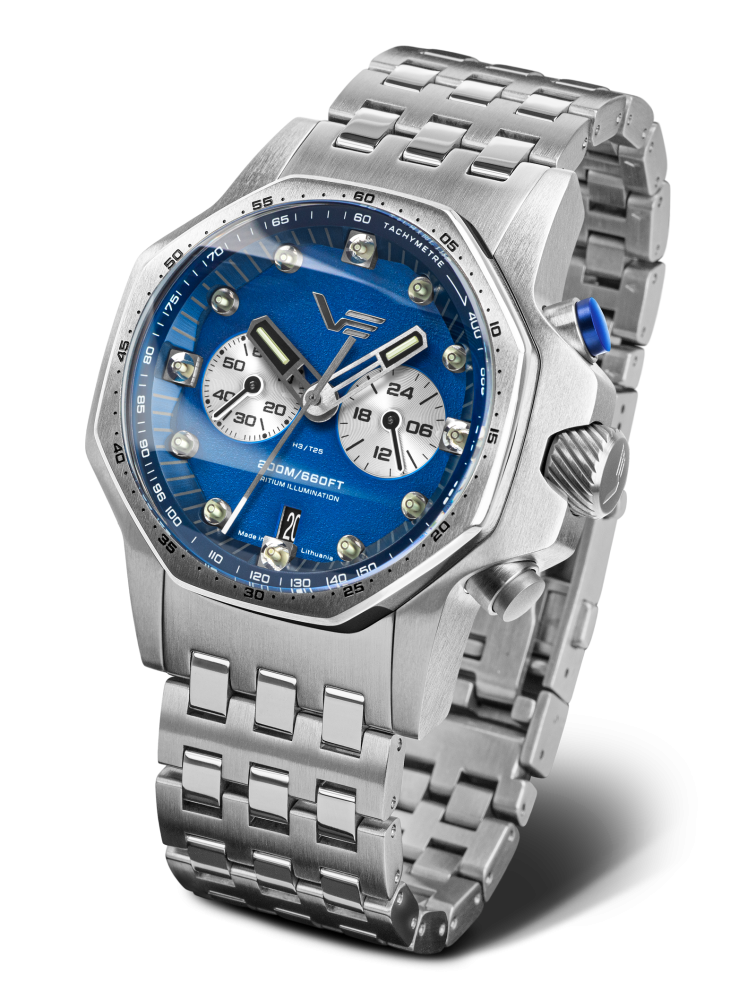- funkce: hodiny, minuty, sekundy, 60 minutový chronograf, šroubovací korunka a automatický heliový ventil