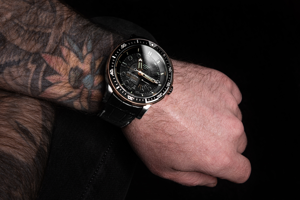 - osvětlení ciferníku: tritium (16 tritiových kapslí švýcarské výroby: 13 ks na indexech, 2 ks na hodinové a 1 ks na minutové ručičce) a Super Luminova