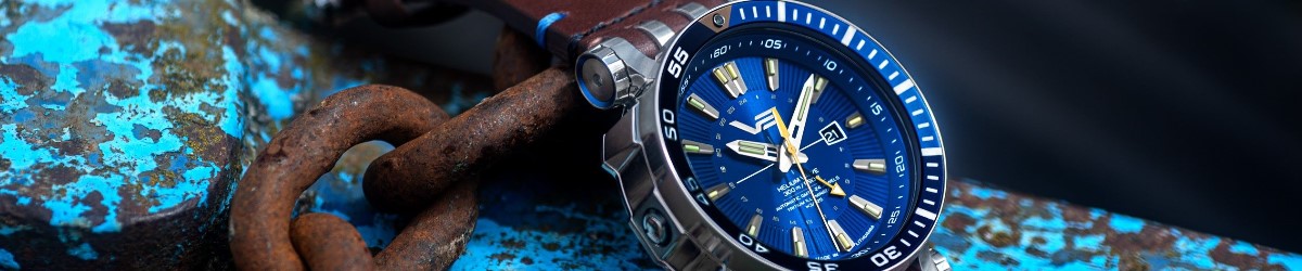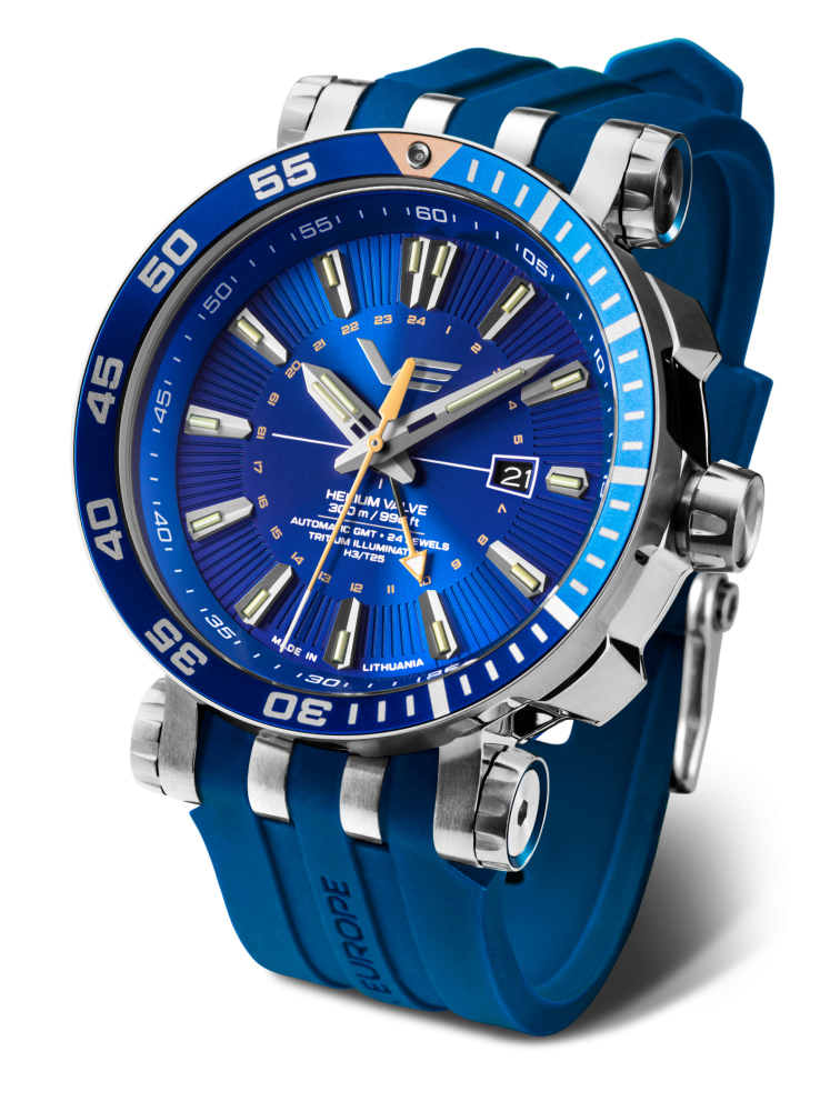 - funkce: hodiny, minuty, sekundy, indikace 24-hodinového času a GMT, tichý timer, šroubovací korunka, heliový
