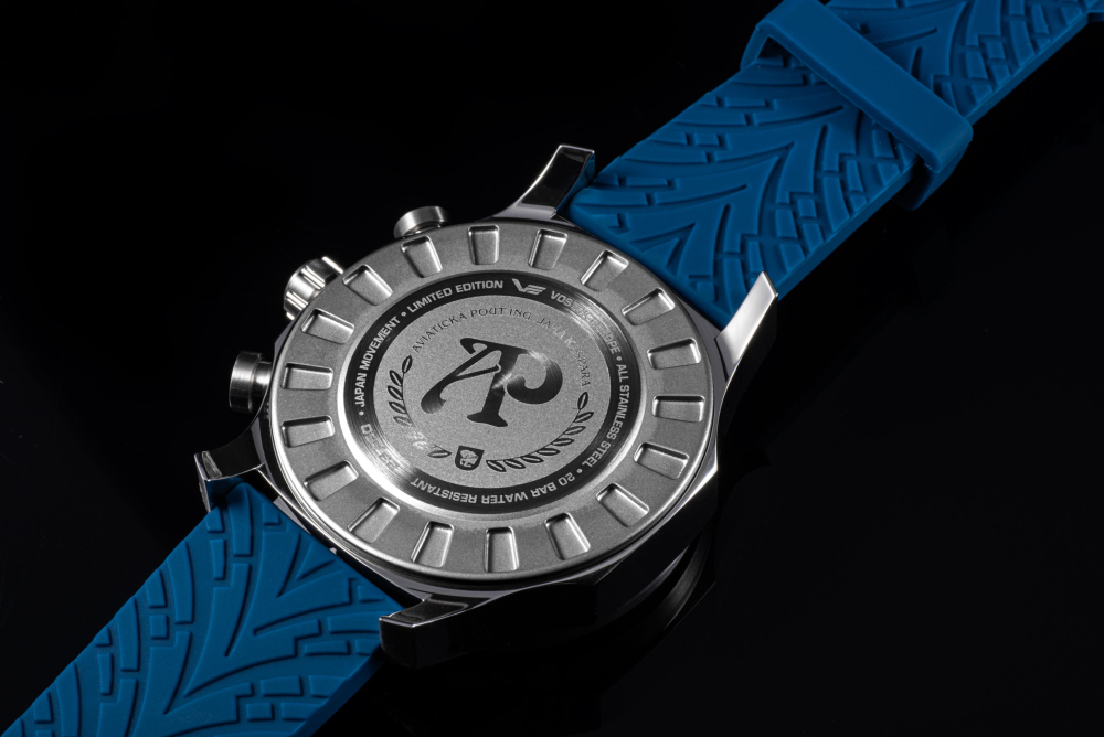 - Funkce: indikace času (centrální hodinová a minutová ručička, boční sekundová ručička v pozici 3 hod.), 60-minutový chronograf (centrální sekundová ručička chronografu, boční minutová ručička chronografu v pozici 9 hod.)