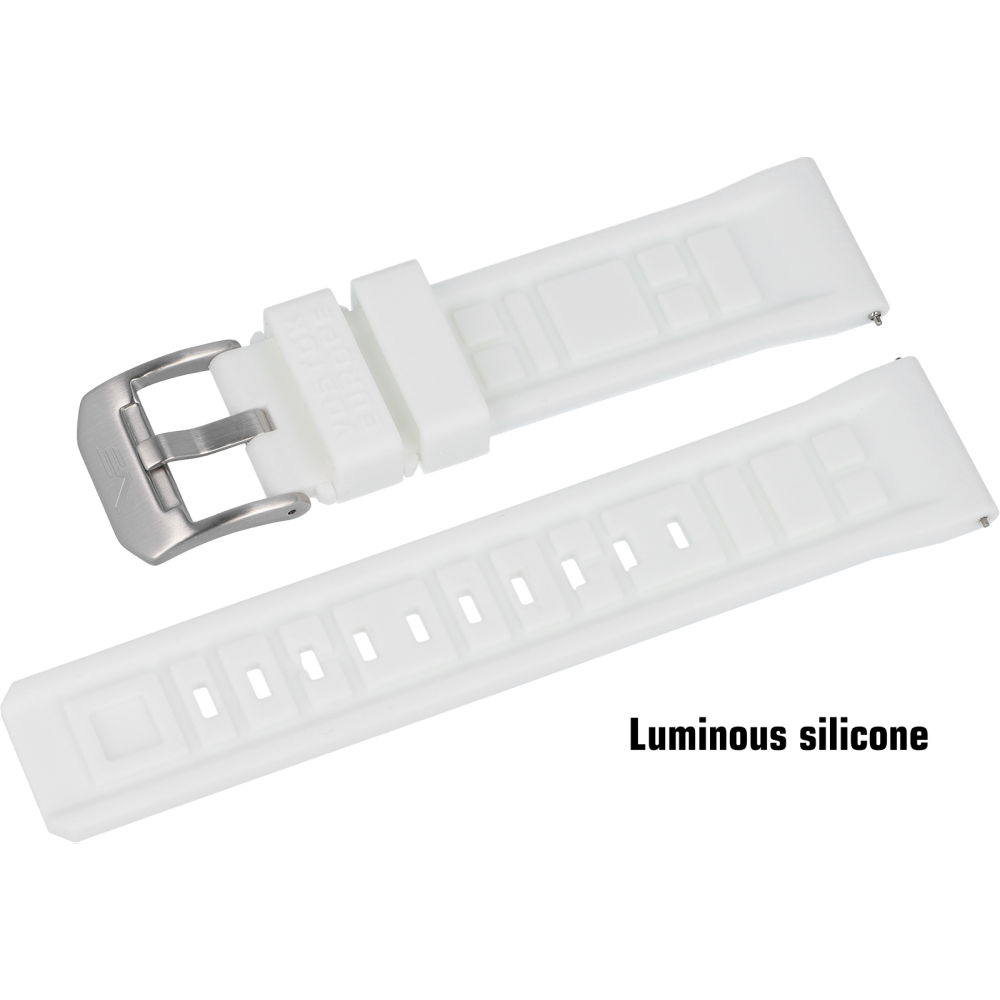 - Silikonový řemínek bílý s luminiscenční a ocelovou přezkou pro model SYSTEMA PERIODICUM