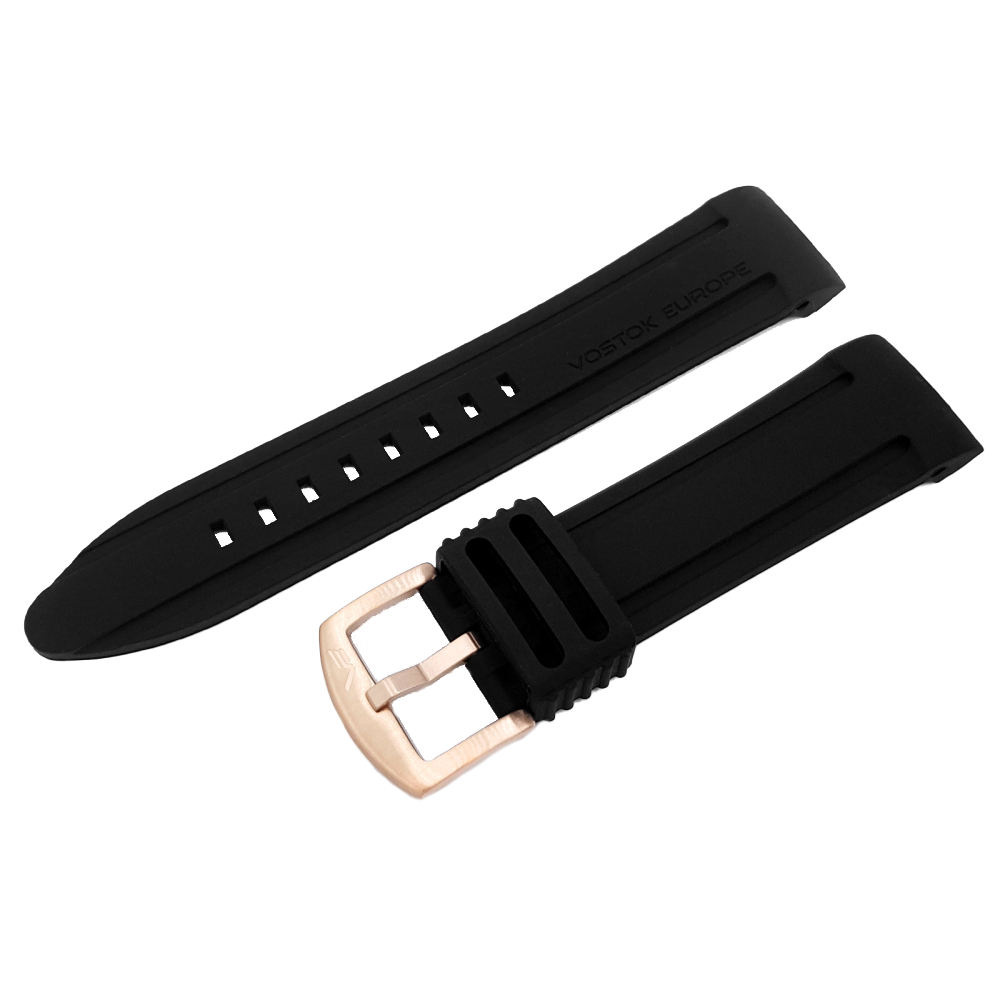 - Silikonový řemínek řerný pro ANCHAR NH35A-5109246 s pozlacenou přezkou