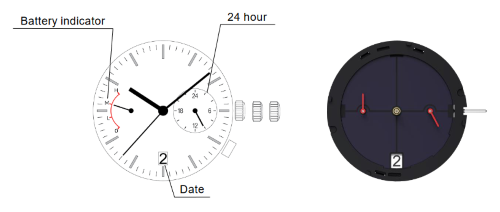 indikace 24hodinového času – boční ručička v poloze 3 hod.