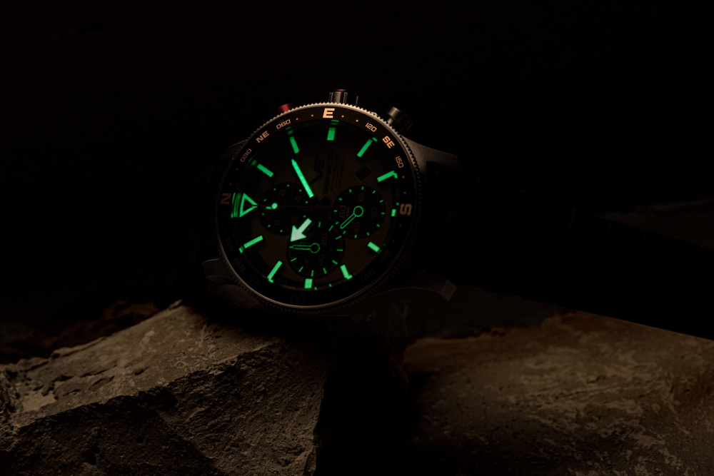 Súčasťou balenia sú dva remienky: čierny silikónový remienok je ideálny pre pohodlie, odolnosť a aktívne používanie v extrémnych podmienkach, zatiaľ čo textilný remienok ponúka spojenie s tradičnými materiálmi. Táto kombinácia umožňuje prispôsobiť si hodinky nielen na použitie počas náročnej expedície, ale aj na každodenné nosenie.