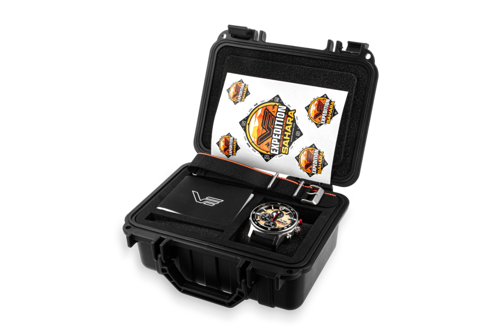 Limitovaná edícia SAHARA bola vytvorená v spolupráci s ambasádorom značky VE, extrémnym motodobrodruhom Karolisom Mieliauskasom. Hodinky testoval sám Karolis počas náročnej 2500 km dlhej expedície „Cesta Tuaregov“ cez prašný a teplotne náročný terén Saharskej púšte. Hodinky preukázali svoju schopnosť odolávať teplu, prachu a neúprosným podmienkam jedného z najextrémnejších prostredí na Zemi.