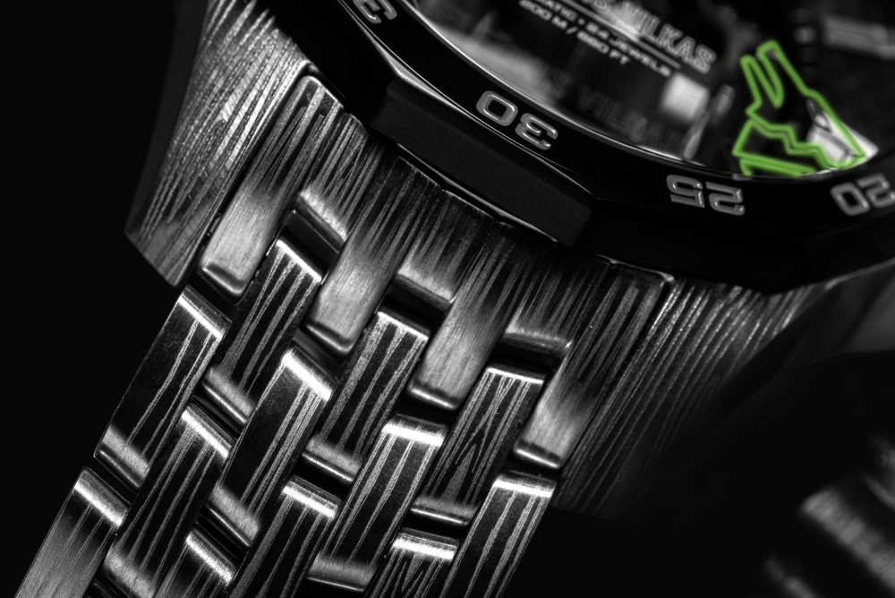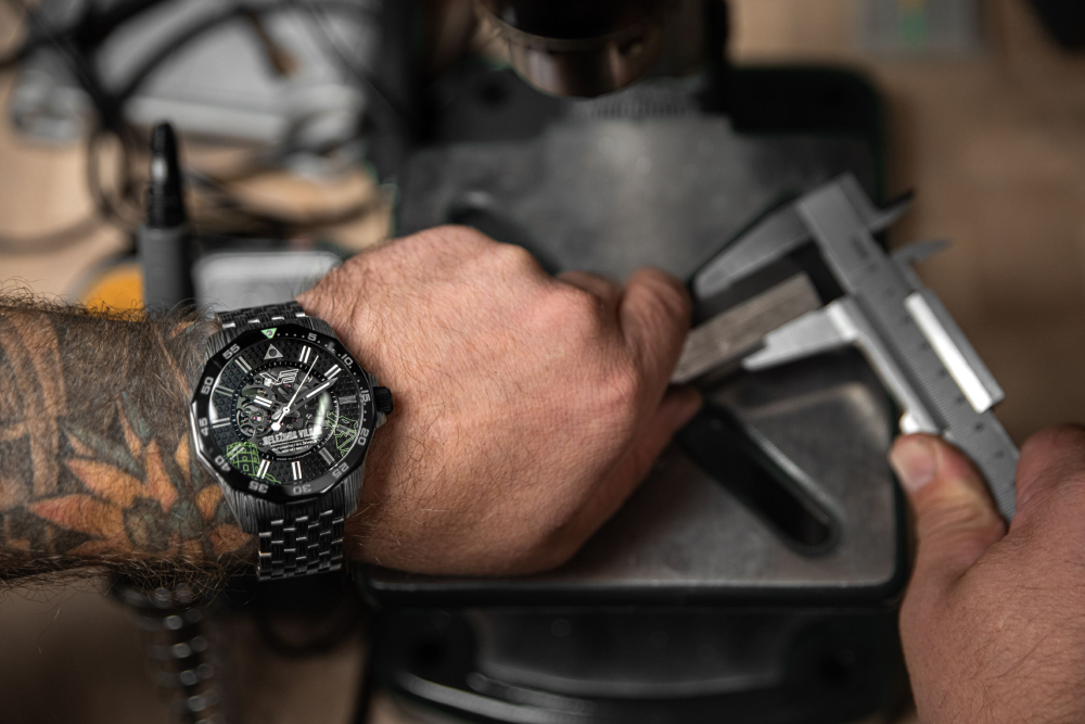 Puzdro hodín je vyrobené z nehrdzavejúcej ocele 316L a kovový náramok je zdobený špeciálnou povrchovou úpravou imitujúcou damaškovú oceľ, a pripomínajúcou vlčiu srsť, čo dodáva hodinkám jedinenčý nádych stredovekej legnedy. Tvrdá čierna keramická luneta zvyšuje róbustnosť hodiniek a odolnosť voči poškriabaniu. Čierny textúrovaný ciferník s kovovými indexami pokrytými vrstvou čiernej Super Luminova zabezpečuje čitateľnosť aj za zhoršených svetelných podmienok. Hodinky poháňa japonský mechanický strojček od skupiny TMI, potiahnutý ruténiom. Strojček je krásne viditeľný cez skeletizovaný ciferník a priehľadný zadný kryt. Luminiscenčná veža a vlčia hlava na skle sú jedninečným a pútavým dizajnovým prvkom, ktorý v tme vytvára ohromujúci vizuálny efekt .