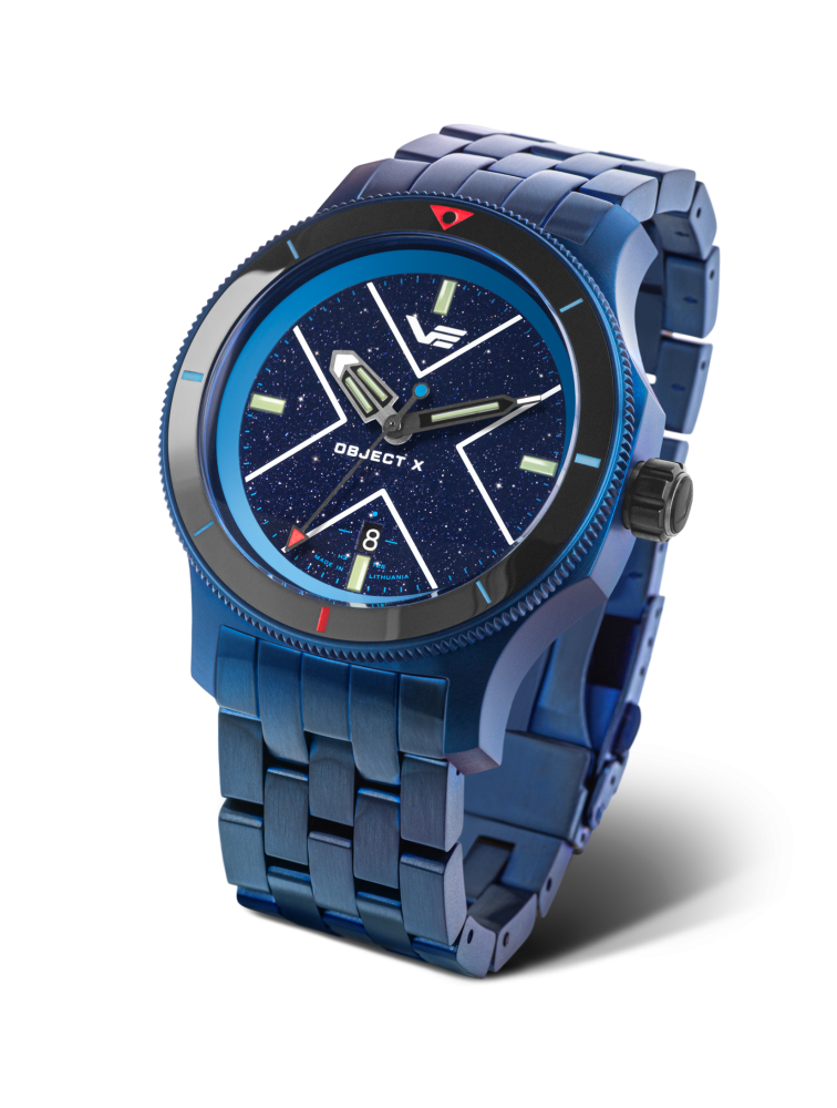 vrstva Super-LumiNova pokrývá písmeno X na ciferníku a tritiové trubice na ciferníku i ručkách
